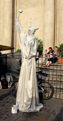 No mais... Berlusconi sempre presente nas lojas de souvenirs figurado num daqueles bonecos que ri e abana a cabeça. Como era de bom gosto, antigamente, pôr-se uns cães de loiça colados ao vidro traseiro dos automóveis. Assim também em Roma: Silvio, o Papa, modelos de gladiadores, um jogador de futebol. Bamboleando-se ao sabor do vento. As semelhanças são realmente muitas...