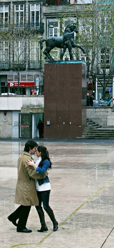 Encaixei a pequena à ilharga, a mão direita nas costas, muito em baixo, o braço esquerdo esticado em frente. E dei mais uns segundos, olhando-a nos olhos, antes de seguir pra diante, num andar cauteloso, quase em "câmara lenta". Até ao erguer da perna (poucochinho, claro, mas ela não podia ver...), até ao momento ímpar de a vergar pela sua delgada cintura. Não caímos. E rodando a seguir, no sentido do ponteiro dos relógios, para voltar à base, sempre naquele naquele propósito de militar comprometido.