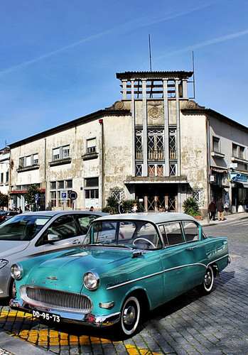 Regresso à infância. Em plástico de brinquedos, o Opel Record era oco e vinha carregado de drops em muitas cores visiveis através da dentição da sua grelha. Em modelo a sério imperava então nas nossas estradas em tons assim gaiteiros. Estacionado em frente ao Garantia seria, com certeza, de mais um hóspede de longínquas paragens. O resto era o sinaleiro no cruzamento da Adriano Pinto Basto com a Santo António.